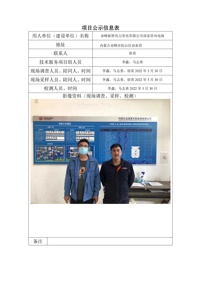 赤峰新勝風力發電有限公司孫家營風電場信息公示