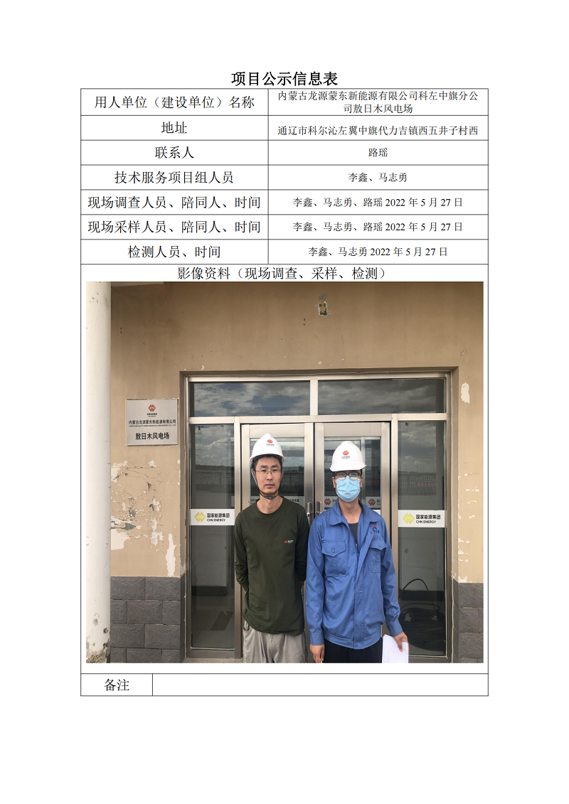 內蒙古龍源蒙東新能源有限公司科左中旗分公司敖日木風電場項目公示