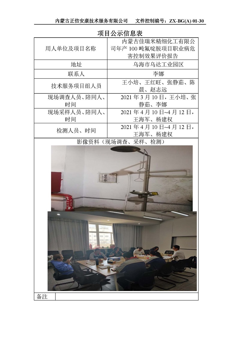 內(nèi)蒙古佳瑞米精細(xì)化工有限公司年產(chǎn)100噸氟啶胺項(xiàng)目職業(yè)病危害控制效果評(píng)價(jià)項(xiàng)目公示