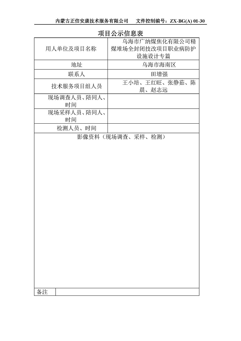 烏海市廣納煤焦化有限公司精煤堆場全封閉技改項目職業病防護設施設計專篇項目公示
