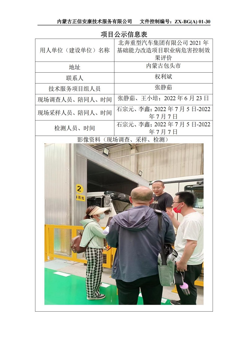 北奔重型汽車集團有限公司2021年基礎能力改造項目職業病危害控制效果評價