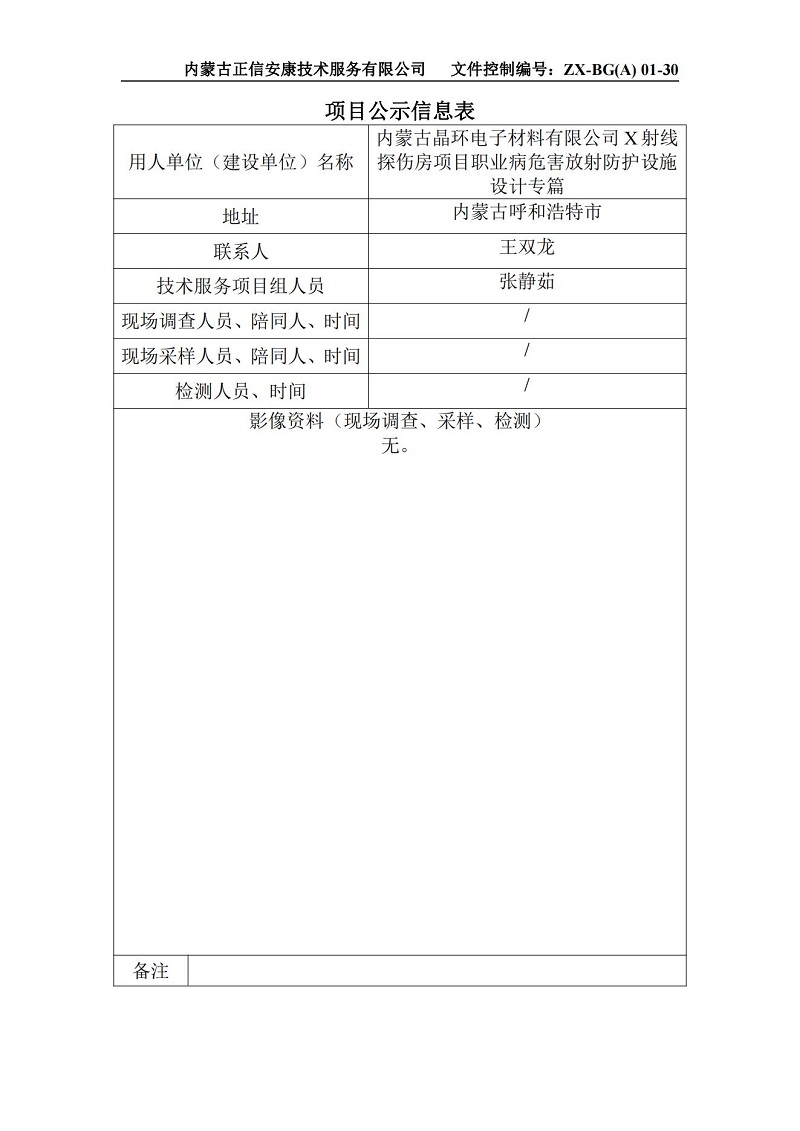 內(nèi)蒙古晶環(huán)電子材料有限公司X射線探傷房項(xiàng)目職業(yè)病危害放射防護(hù)設(shè)施設(shè)計(jì)專(zhuān)篇