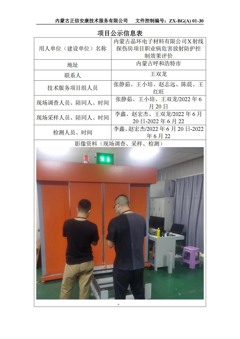 內(nèi)蒙古晶環(huán)電子材料有限公司X射線探傷房項(xiàng)目職業(yè)病危害放射防護(hù)控制效果評(píng)價(jià)項(xiàng)目公示