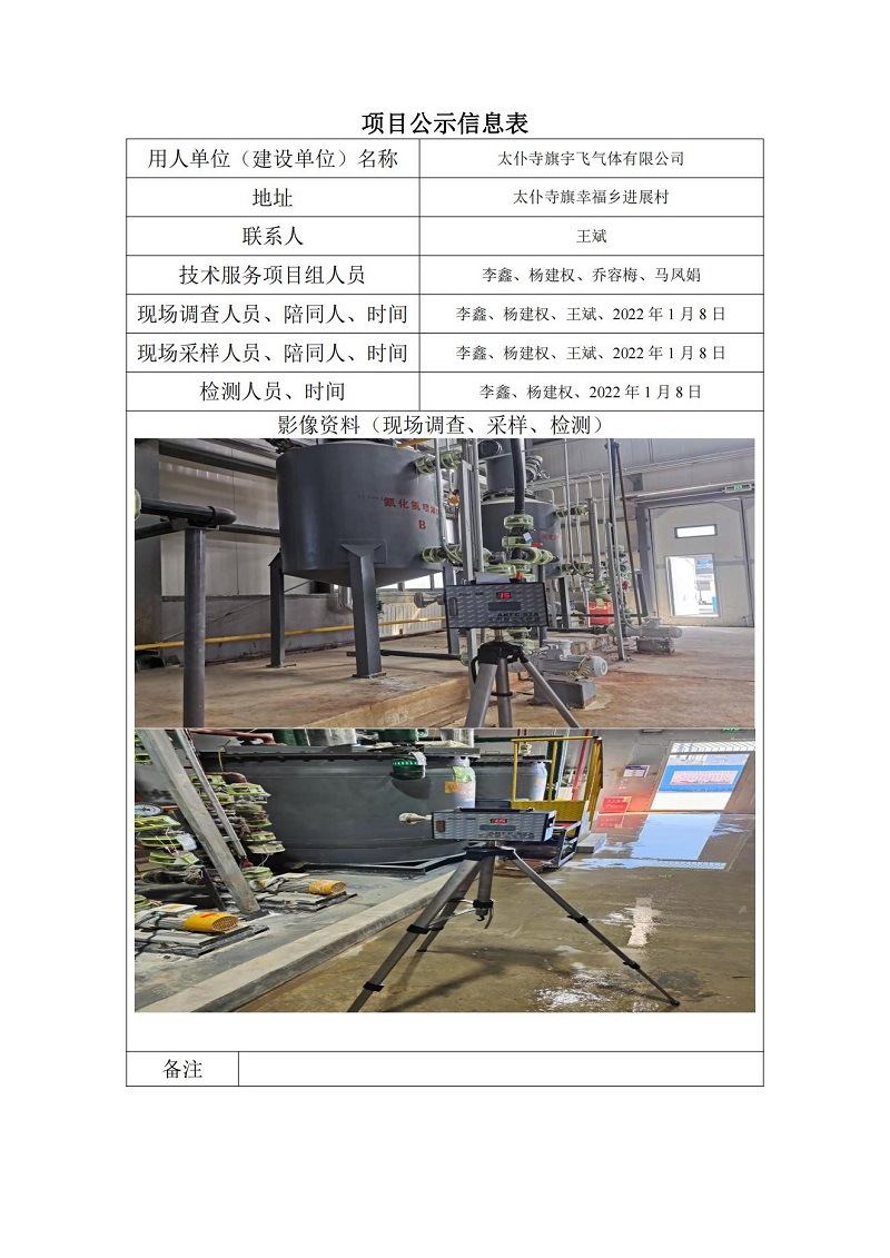 太仆寺旗宇飛氣體有限公司定期檢測項目公示