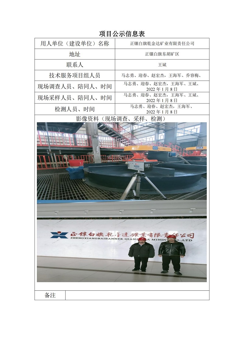 正鑲白旗乾金達礦業有限責任公司定期檢測項目公示