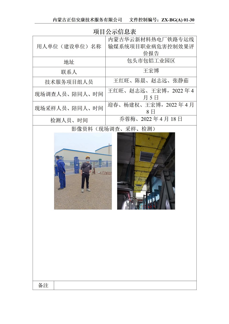華云熱電廠鐵路轉運行輸煤系統控評項目公示信息表