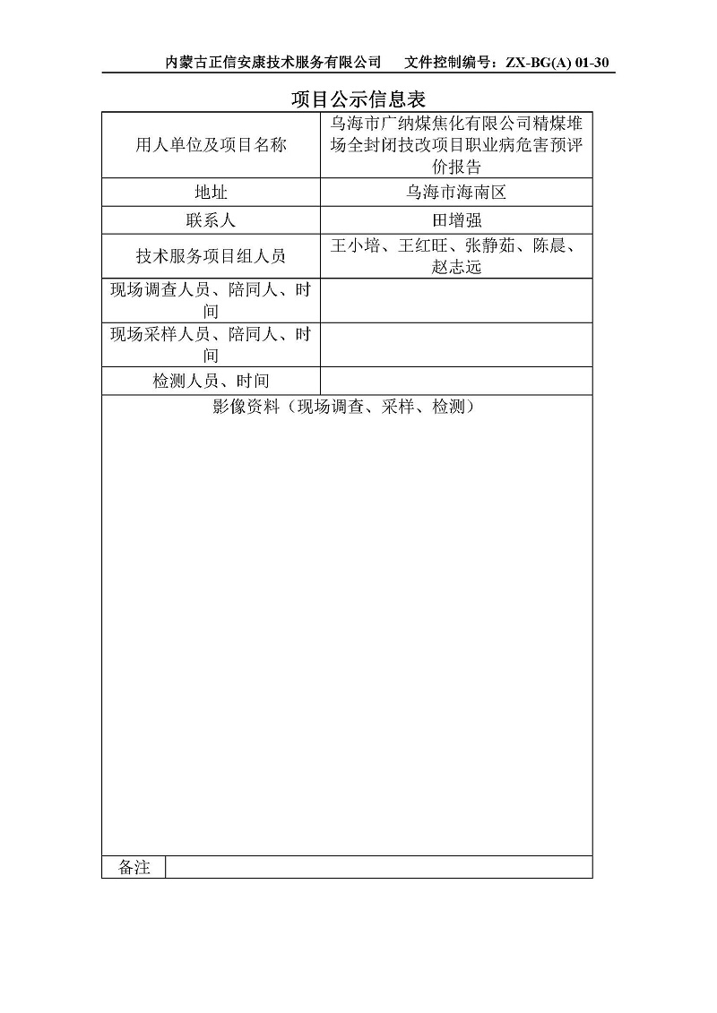 烏海市廣納煤焦化有限公司精煤堆場全封閉技改項目職業病危害預評價