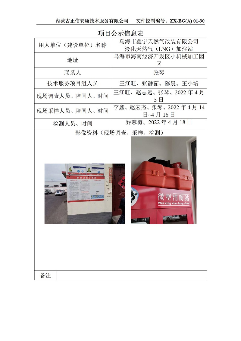 烏海鑫宇加氣站現狀項目公示信息表