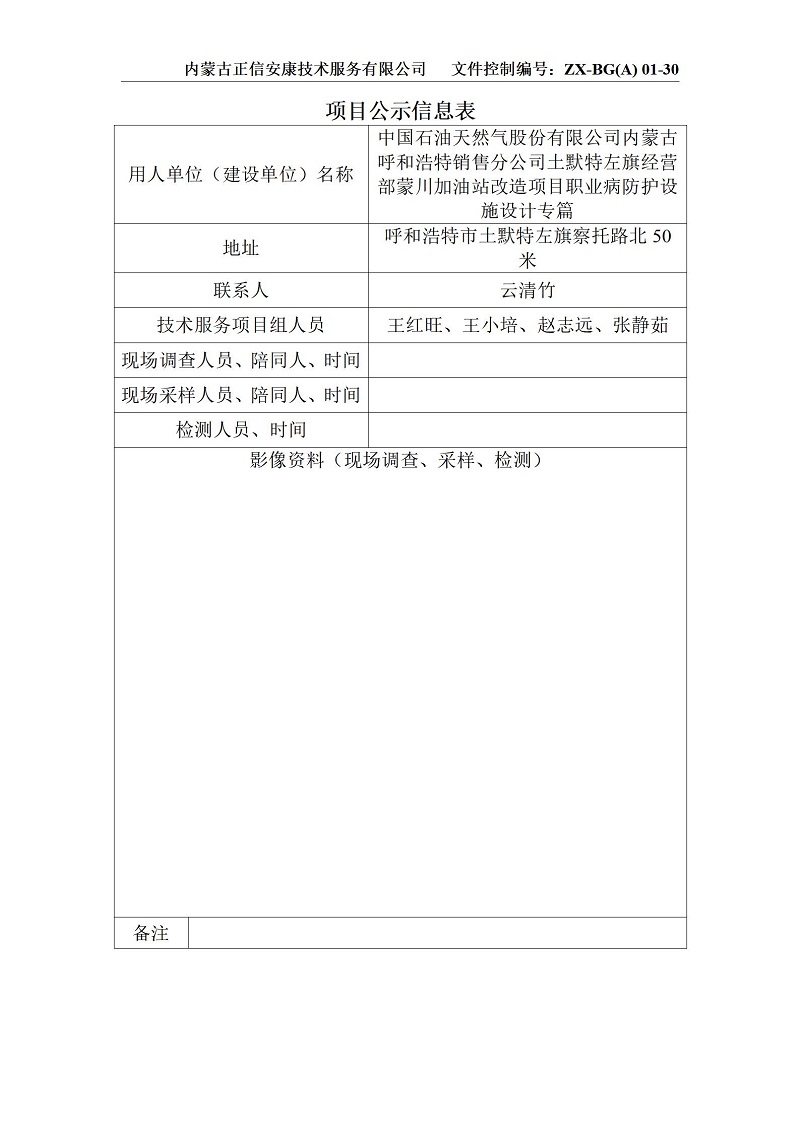 中石油蒙川加油站專篇項目公示信息表