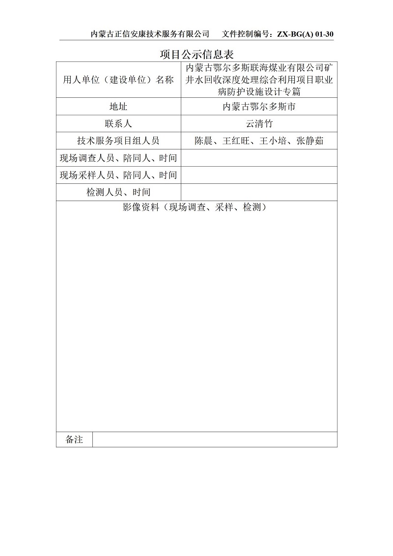 聯海煤業礦井水回收(專篇)項目公示信息表