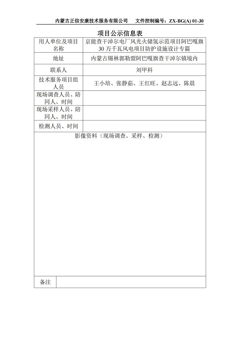 京能查干淖爾電廠風(fēng)光火儲氫示范項(xiàng)目阿巴嘎旗30萬千瓦風(fēng)電項(xiàng)目防護(hù)設(shè)施設(shè)計(jì)專篇項(xiàng)目公示信息表