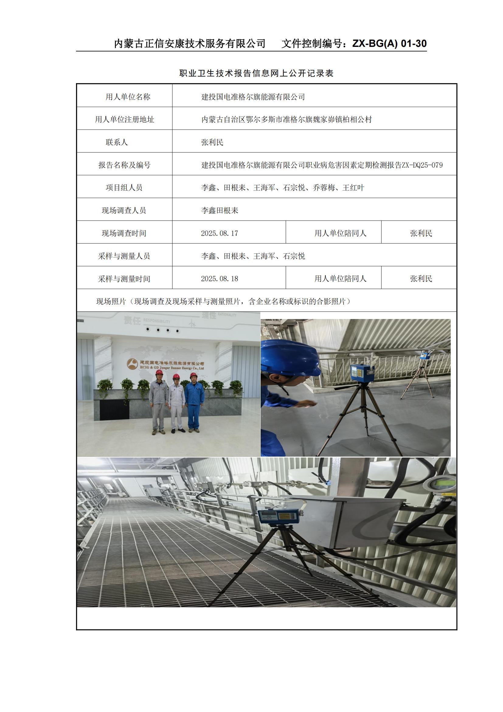 建投國電準格爾旗能源有限公司職業病危害因素定期檢測
